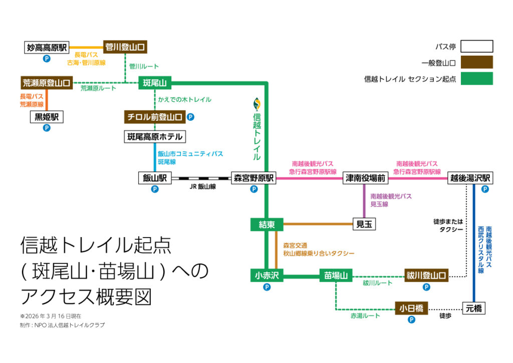 信越トレイル全体のアクセスに関する詳細については、こちらをご覧ください。