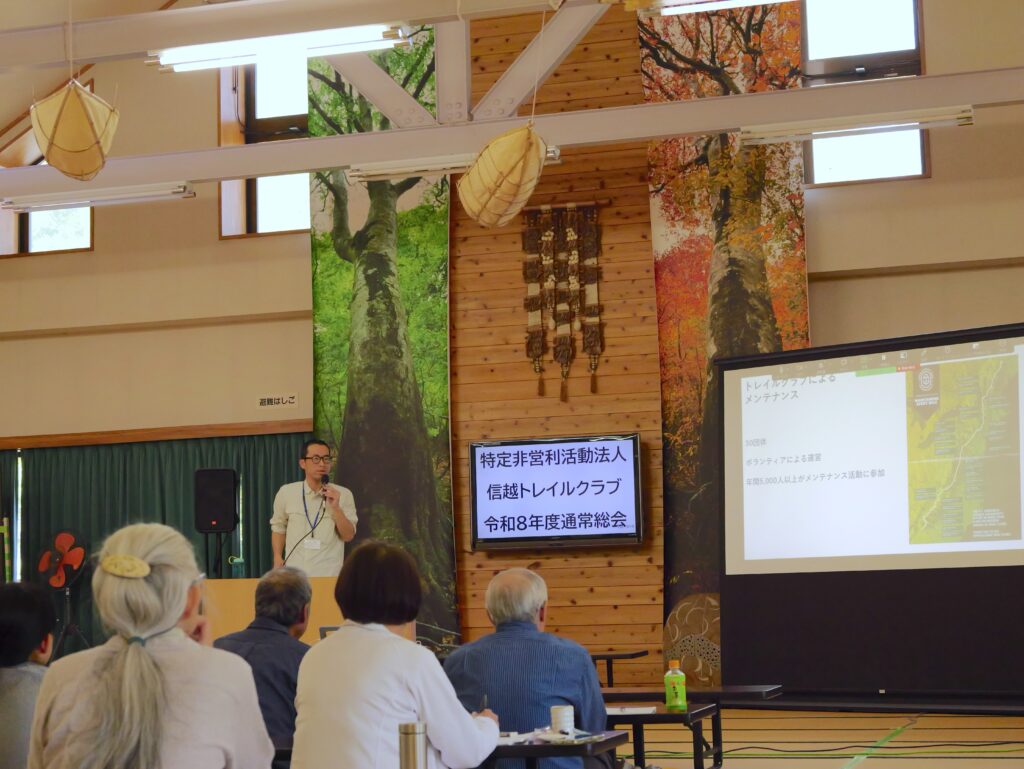 4月25日、信越トレイルクラブ令和8年度通常総会が開催されました。会場の「なべくら高原・森の家」までお越しいただいた皆さま、またオンラインでもご出席を賜り、誠にありがとうございました。