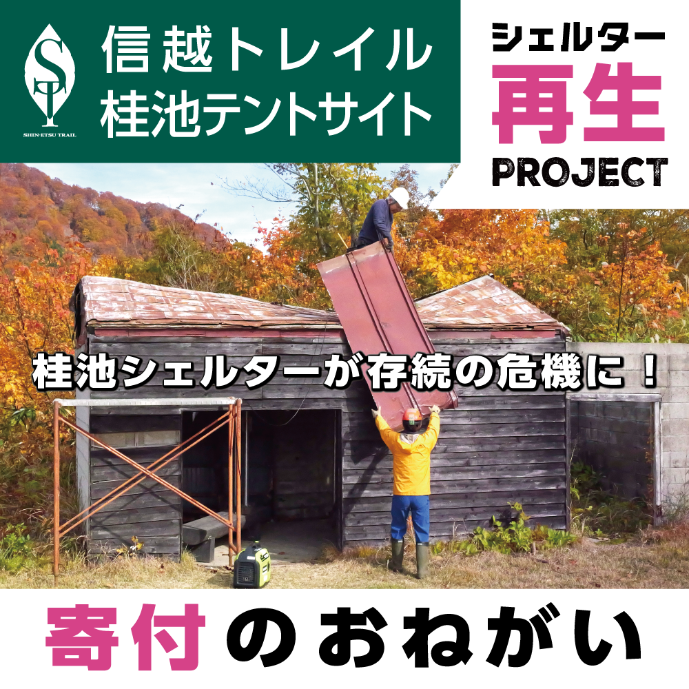 ※ 寄付金がシェルター再生に必要な金額を上回った場合、余剰金は信越トレイルクラブが実施するトレイル整備に充てさせていただきます。
