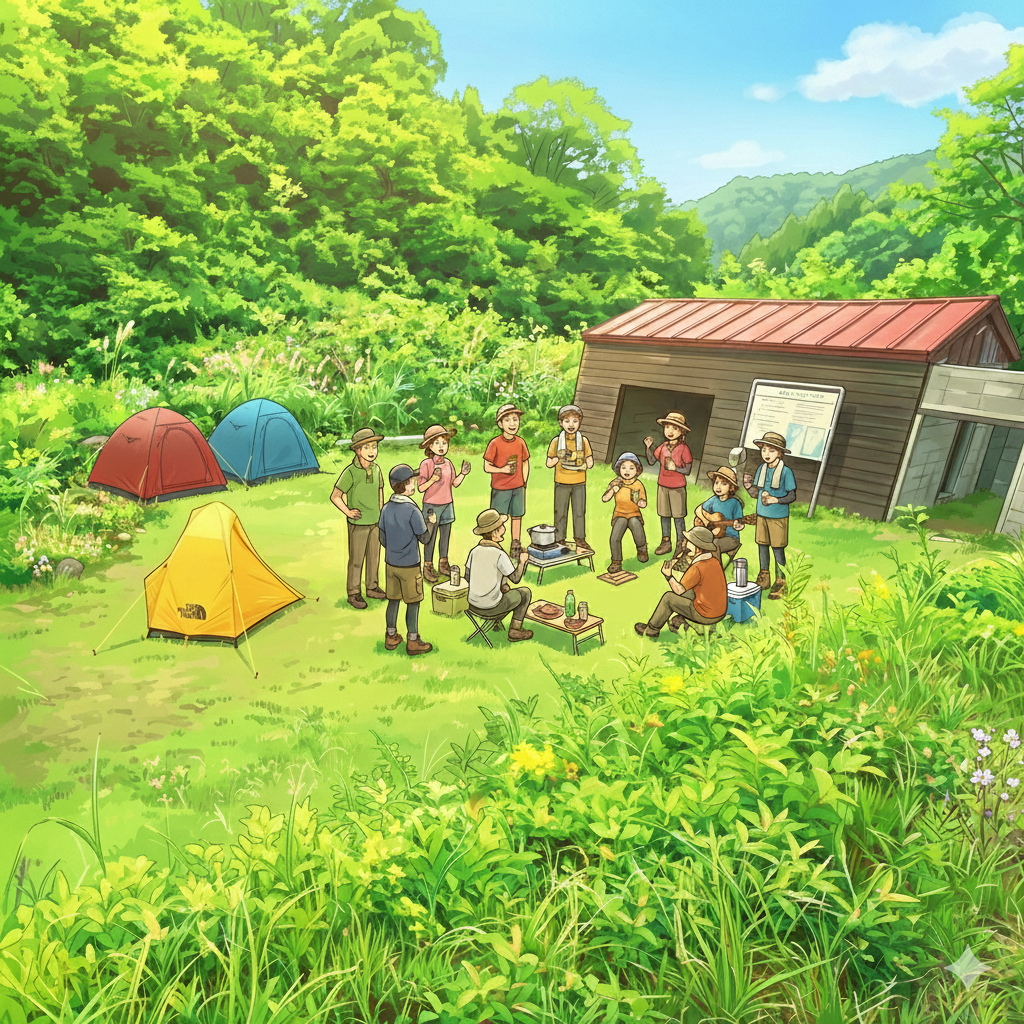 野芝が敷き詰められた、サイト数5張のこの小さなテントサイトは、2012年から信越トレイルの指定テントサイトとして運用されています。