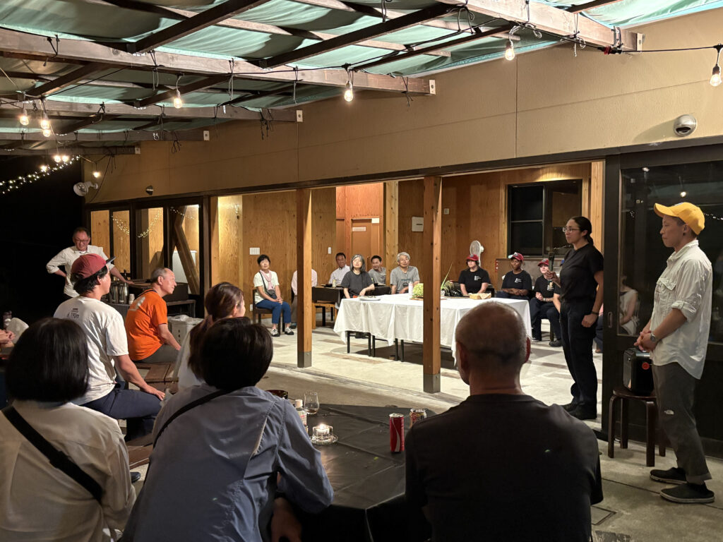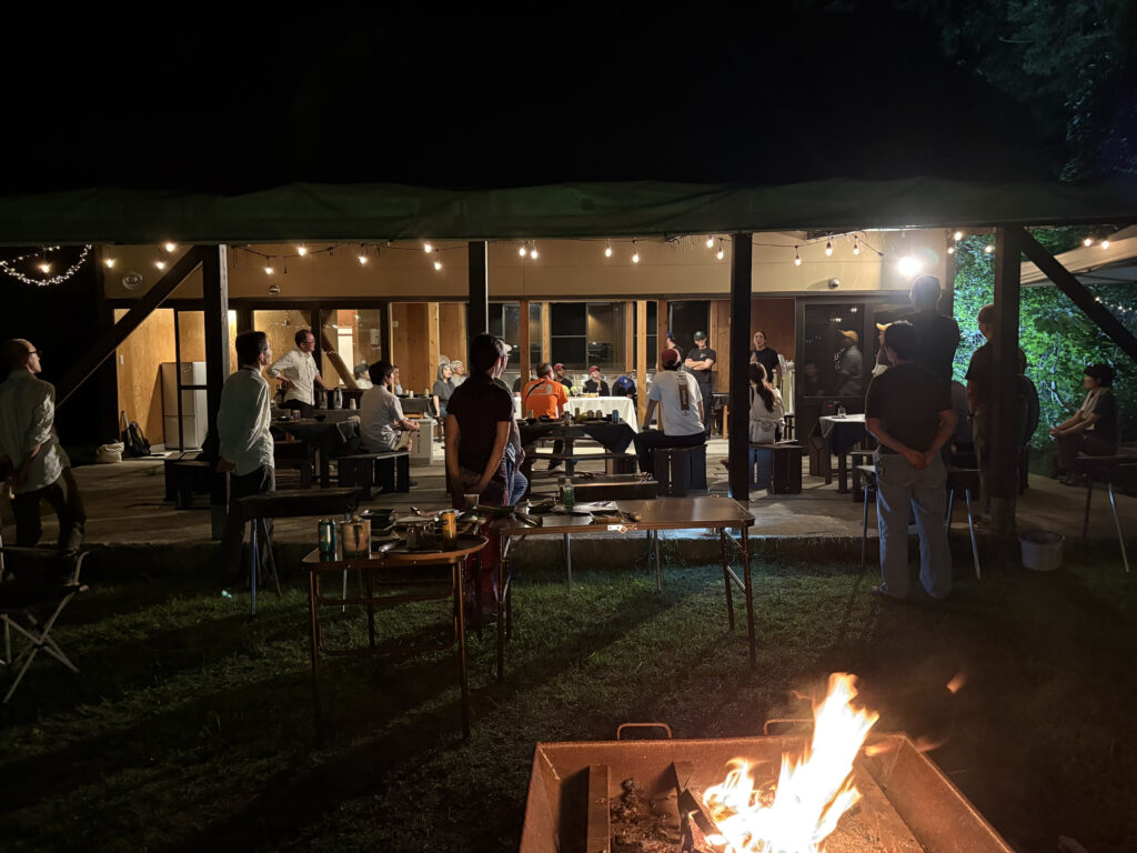 夕方からの交流会BBQでは、焚き火を囲んで郷土料理や地元のお酒を楽しみながら、トークセッションで語り切れなかったことや、トレイルの維持管理の未来について、参加者・登壇者の垣根を超え、熱い意見交換が行われました。