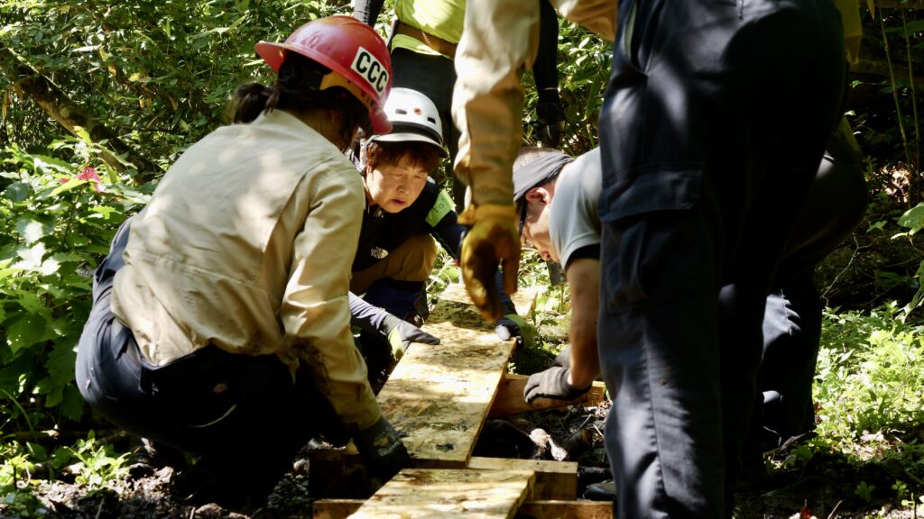 今回は米カフォルニアの州政府自然保護部隊、California Conservation Corps (CCC)を特別ゲストに迎え、「整備ボランティア」に焦点を当て議論を交わすトークセッションとともに、実際の整備をボランティア参加者とCCCメンバーが一緒に行うSPECIAL WORK DAYSも実施しました。