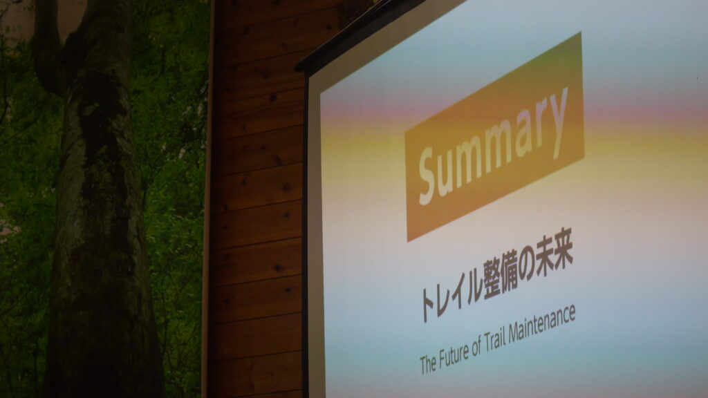 クロージングには、NPO法人みちのくトレイルクラブの 事務局長・相澤久美さんより、連続開催となる「Trail Maintenance Meeting 2025 in 大船渡」について紹介いただきました。(CCCメンバーも参加し、今年2月に発生した大規模山林火災からの復旧などをテーマに、議論と整備作業が行われました。)